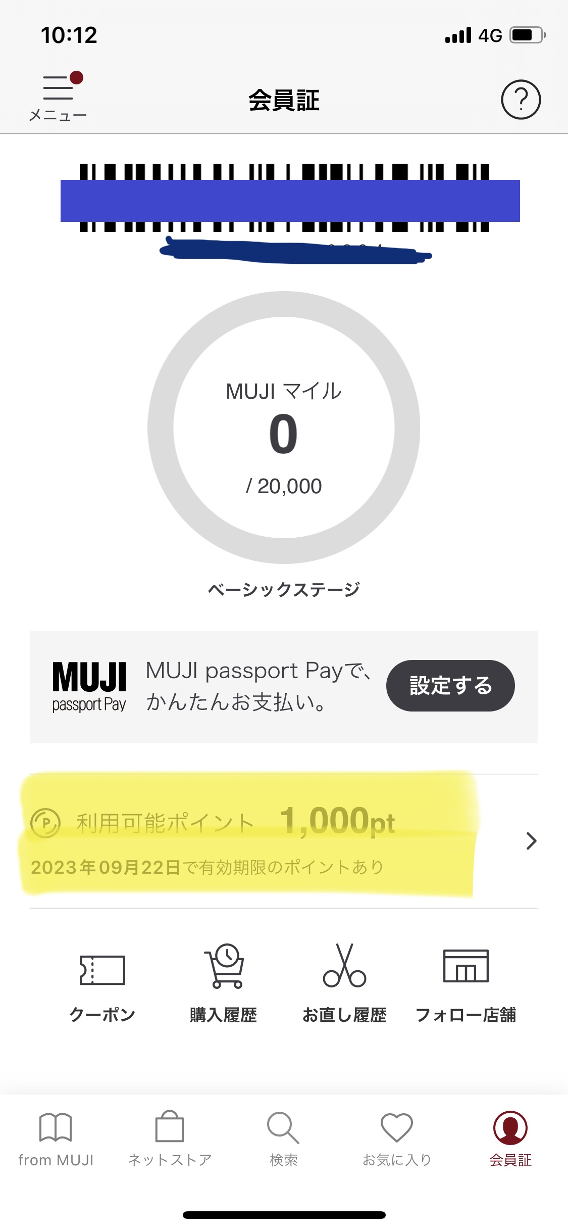とにかく使い方を定員さんに聞いてみたところ、MUJIマイルの画面にあるバーコードにポイント情報も紐づいているので、