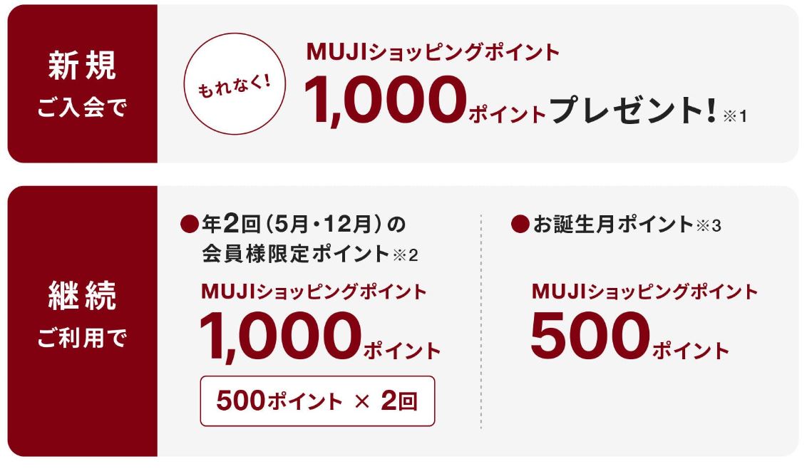 無印の公式サイトによると、毎年1000ポイント追加でくれるらしい♪