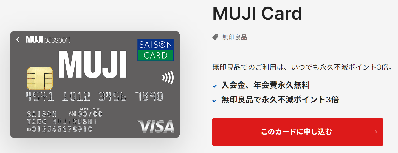 しかも無印で買い物するとき、カード使えば永久不滅ポイント獲得のようです。